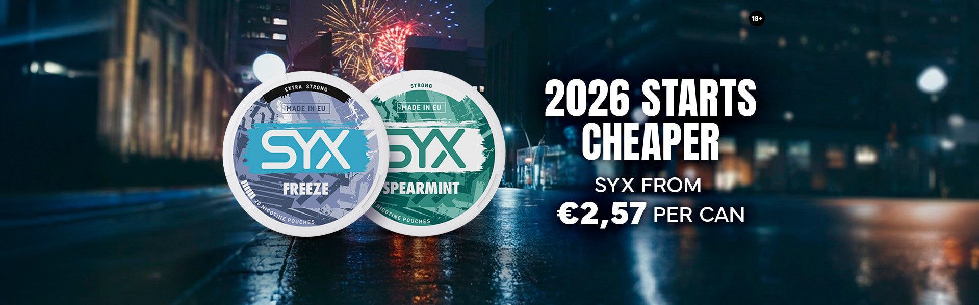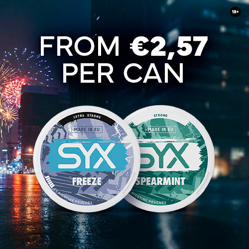 SYX Spearmint Extra Strong (die stärkste Sorte in unserem Sortiment) enthält 20 mg Nikotin pro Slim-Beutel. Knackiger Spearmint-Geschmack, diskrete Passform...